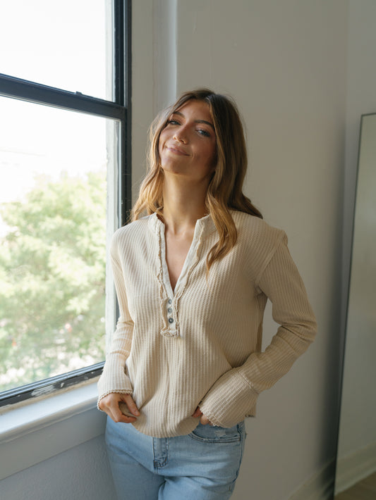 Sold outKaydie Waffle Knit Top-Tan