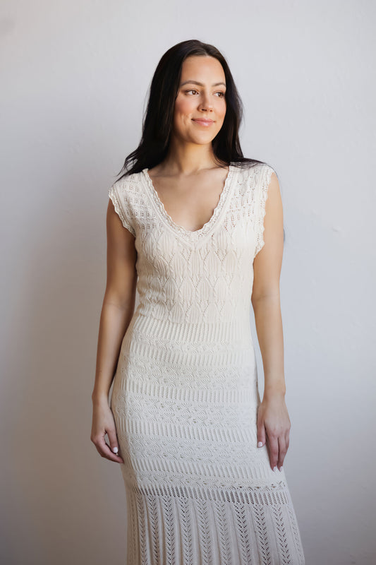 Z SUPPLY: Marsella Crochet Midi Dress-Sea Salt