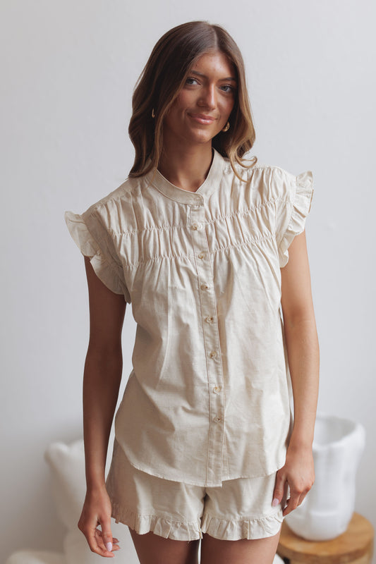 Sold outMaddie Ruffle Shorts-Oatmeal